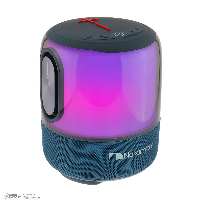 اسپیکر بلوتوثی قابلحمل ناکامیچی مدل Horizon 60 یکی از محصولات قدرتمند و خوشساخت این برند ژاپنی است که با طراحی مدرن و توان صوتی بالا، تجربهای حرفهای از پخش موسیقی ارائه میدهد. این اسپیکر با ابعاد ۱۸۰×۱۸۰×۲۳۵ میلیمتر و وزن ۲۳۵۰ گرم، ظاهری پایدار و استوار دارد که بر پایهای محکم قرار میگیرد و برای استفاده روی میز کار، اتاق نشیمن یا محیطهای تفریحی کاملاً مناسب است. جنس بدنه پلاستیکی مقاوم در برابر خطوخش و طراحی هندسی آن حس استحکام و جذابیت را همزمان منتقل میکند. نورپردازی RGB در بخشهای جانبی، جلوه بصری چشمگیر ایجاد میکند که به ریتم آهنگ واکنش نشان داده و فضا را به محیطی پویا و مدرن تبدیل میکند.